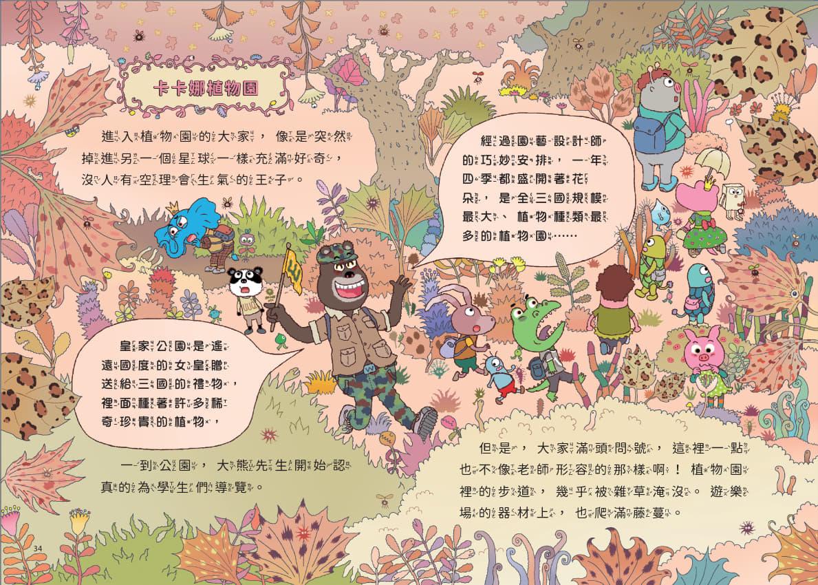 艾迪王子是個一板一眼的模範生,每天在固定的時間做固定的事,生活只要有一丁點不如意就會火冒三丈、氣得鼻子打結,沒想到他陰錯陽差跟著山雨小學的學生來到了瘋狂植物園,與大家一起探險、逃亡、解謎。他該如何逃離各種植物怪獸的追趕?王子的理性和感性,是否能在關鍵時刻發揮作用?