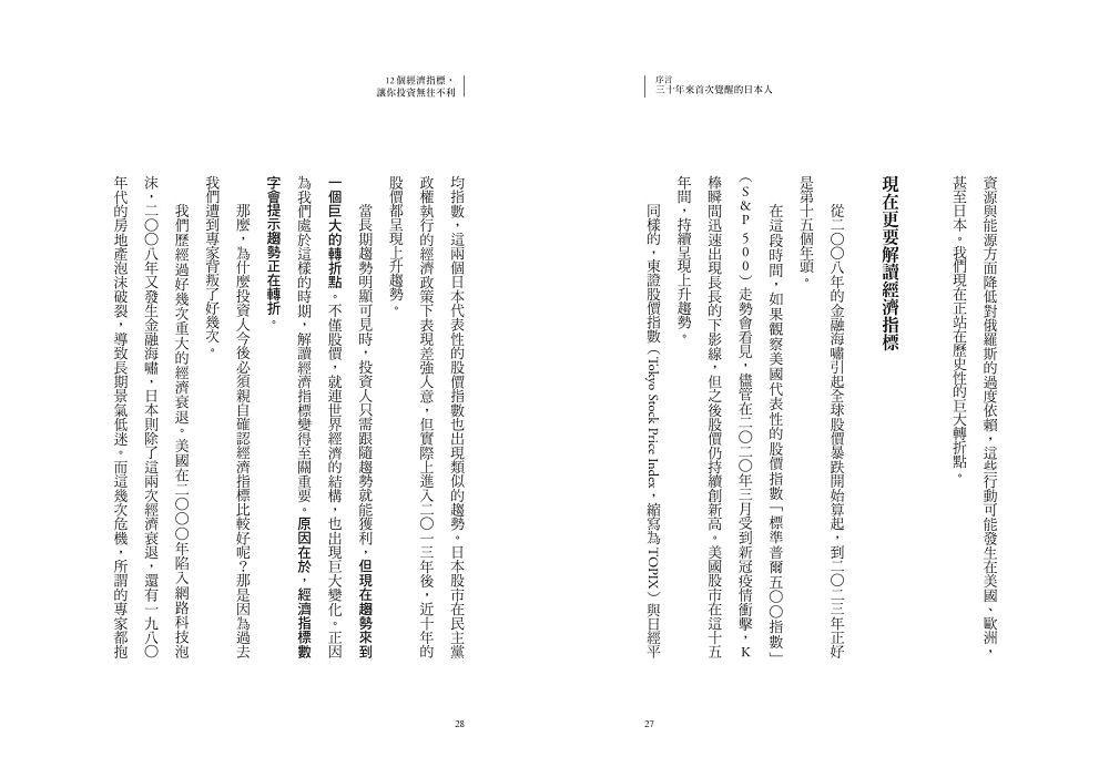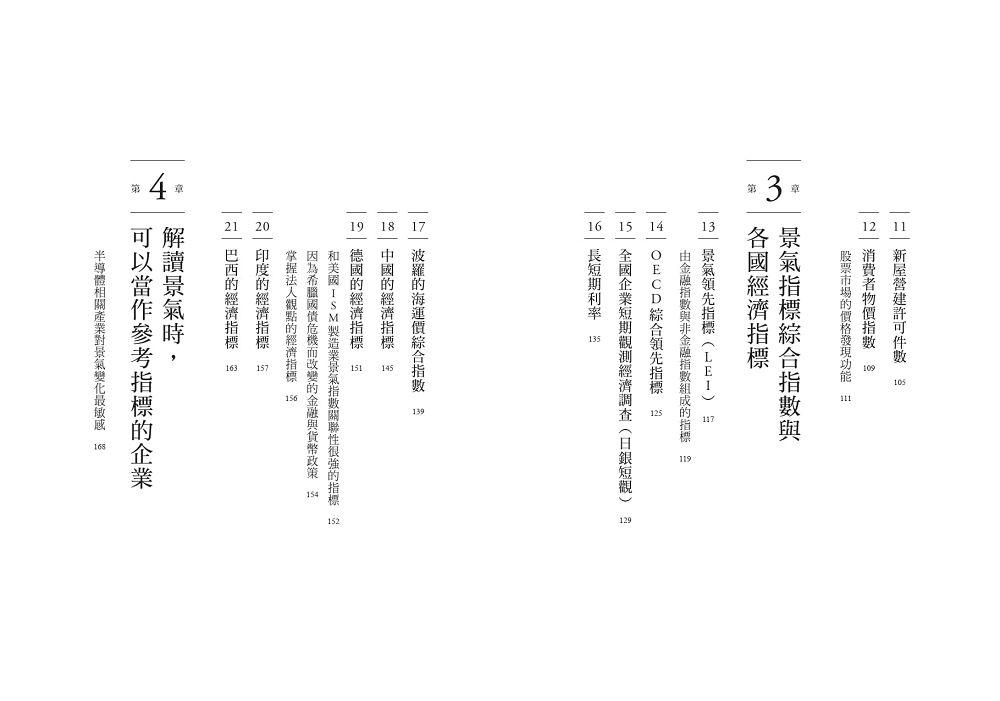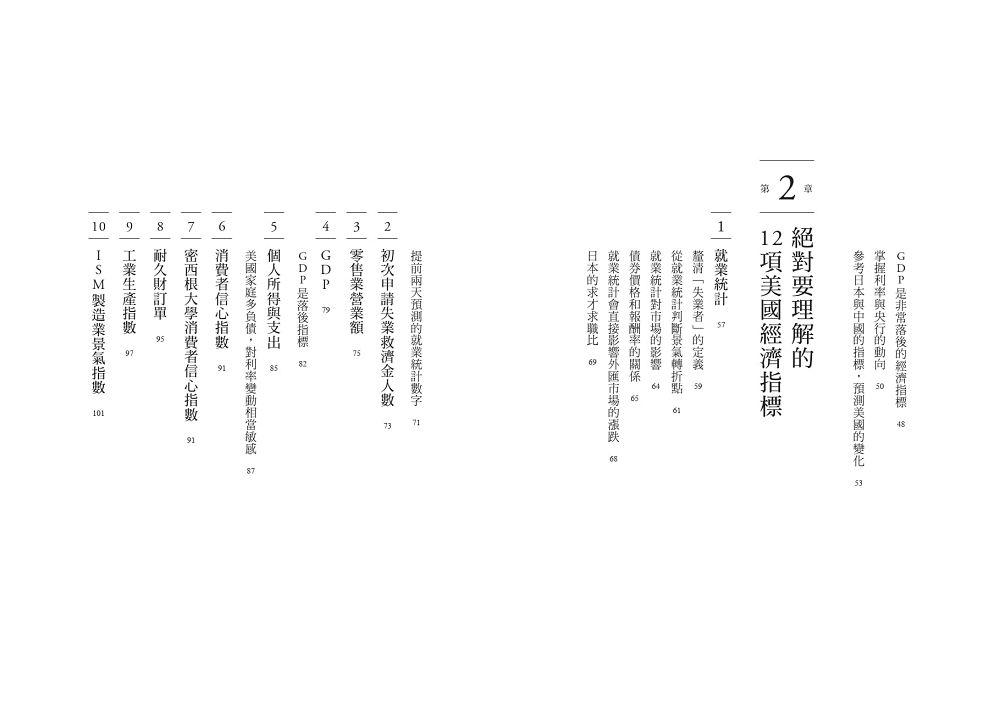 他清晰解讀12項重要的美國經濟指標,也進一步說明輔助判斷用的9項關鍵綜合指標,甚至指明具備經濟指標特性的企業,幫助讀者: