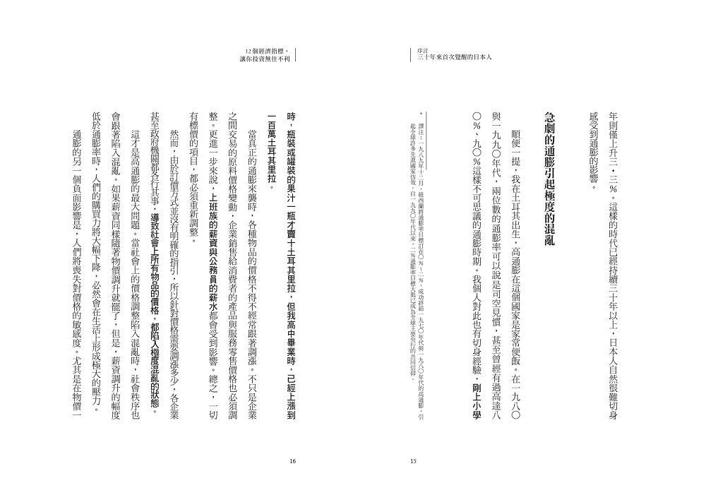 順便一提,我在土耳其出生,高通膨在這個國家是家常便飯。在一九八○與一九九○年代,兩位數的通膨率可以說是司空見慣,甚至曾經有過高達八○%、九○%這樣不可思議的通膨時期。我個人對此也有切身經驗,剛上小學時,瓶裝或罐裝的果汁一瓶才賣十土耳其里拉,但我高中畢業時,已經上漲到一百萬土耳其里拉。