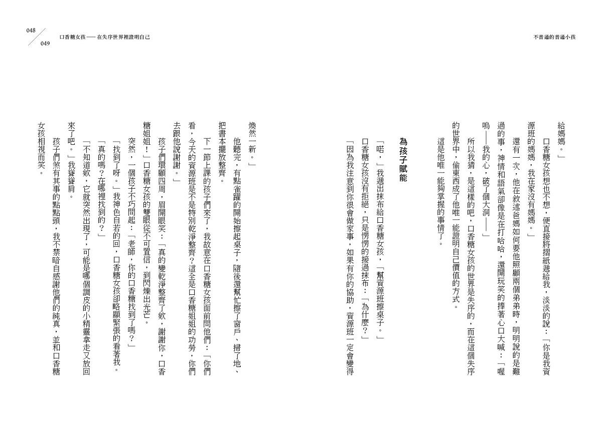 希望這本書在陪伴各位讀者的同時,不只提供與特殊孩子的相處之道,也能讓人們的胸襟變得輕盈,世界變得遼闊,足以容納每個不同生命背後的故事。