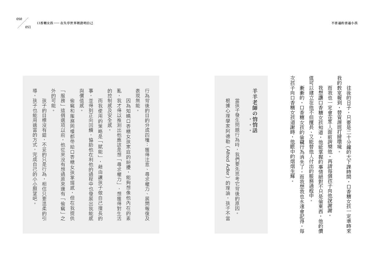 談教育的書,多流於教導方法,很難感動人心。而「不普通的普通小孩」,卻讓我感動欲泣,值得所有需要面對孩子的大人閱讀。∼李佳燕|傳家家庭醫學科診所負責醫師、「還孩子做自己行動聯盟」發起人)