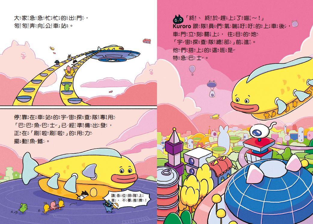 Kuroro宇宙探查隊搭著喵喵號出發,但沒想到這一路挑戰接連不斷,充滿趣味,笑料百出。在書中不只是要完成拯救神木的任務之外,也有許多簡單的互動遊戲,小讀者們可以隨著劇情的推展,一邊動動腦,陪著Kuroro一起完成任務。