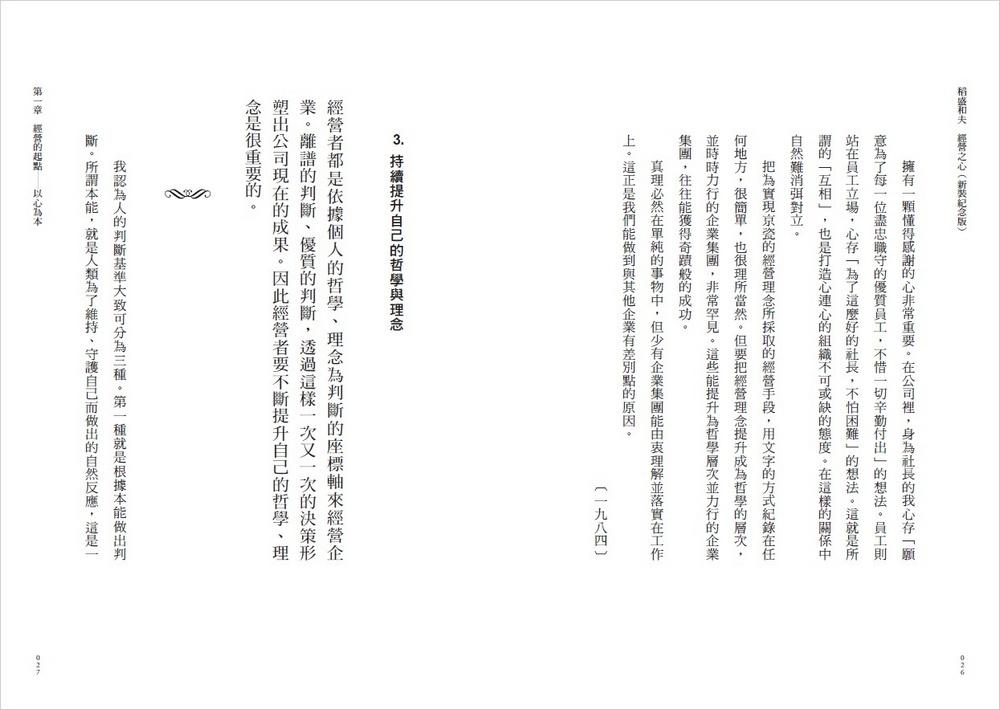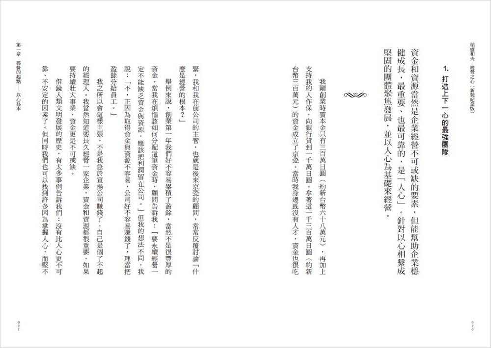 「經營說穿就是反覆思考如何追求最大利潤,最小支出的過程;而若問我經營的基礎是什麼,無論何時我的回答都是『人心』。」──稻盛和夫