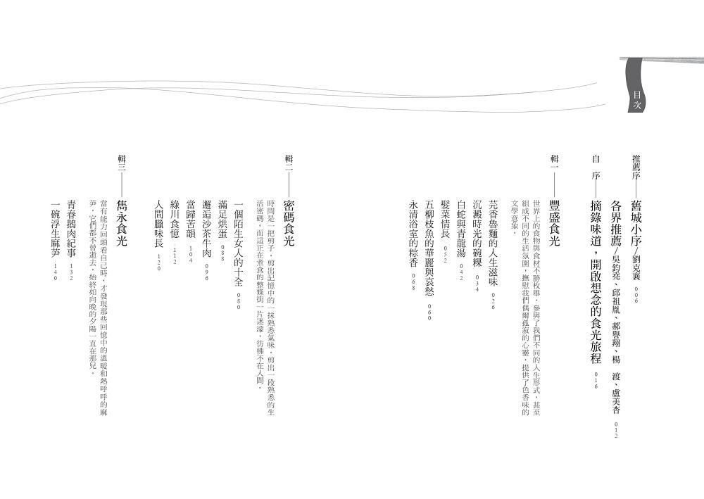 食物記錄時光旅程,透過文字延伸了人生的長度,回味不為人知的片段和溫暖,並撫慰偶爾孤寂的心靈。