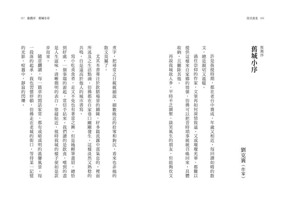 食物成為記憶的密碼,身世與鄉愁在時間的長廊裡變身,咀嚼不只是爲了安慰,溫柔的味蕾從來都不做審判。當飲食書寫成為新世紀顯學,鄭如晴在《往日食光》娓娓道來每一道食物的故事,從容優雅,不炫耀、不急躁,吃完令人回味無窮。有些似茶回甘,有些似酒帶著後勁,許多人生況味,更是過來人才可能辨別,同理心使味道更美,人情味讓世界變得更繽紛。