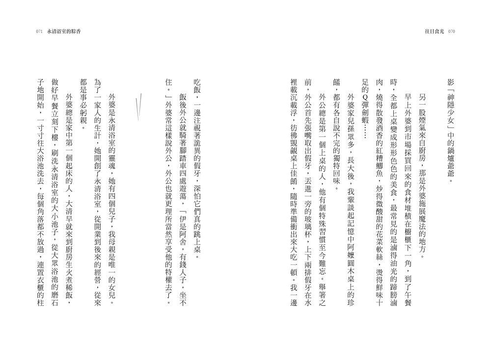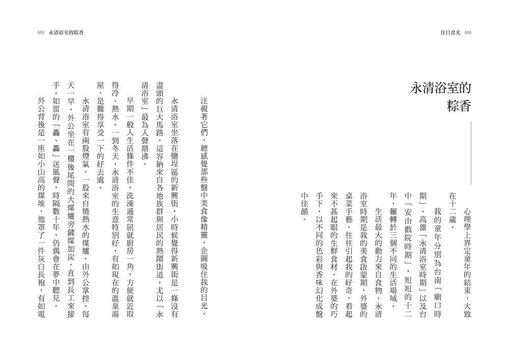 書裡藏了各地的吃食、人情和故事。用兩年的時間,拾穗般從南台灣的高雄永清浴室、台南廟口、台中中華路,甚而遠至德國慕尼黑,撿拾一段段我在時間隙縫中遺落的美食光陰。