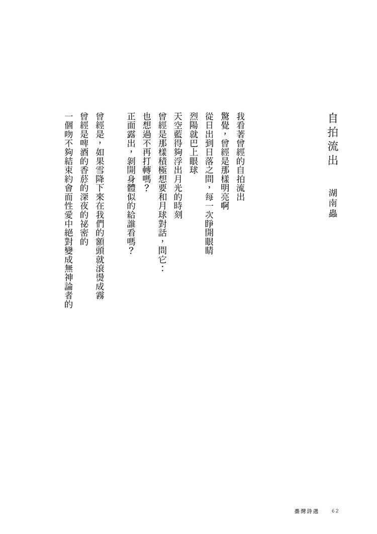 這六輯共67位詩人,將引領你凝視,聆聽,撫觸,嗅聞這一座詩的島嶼