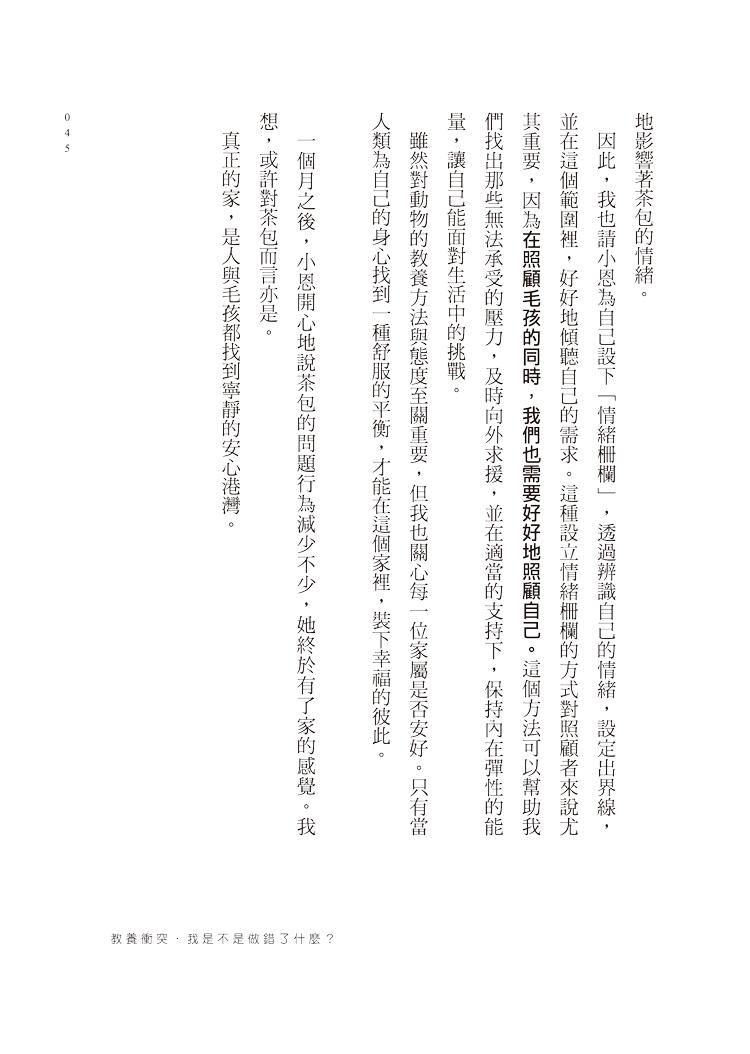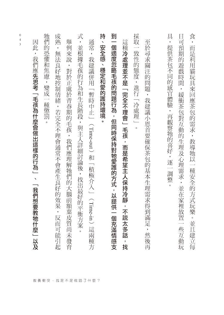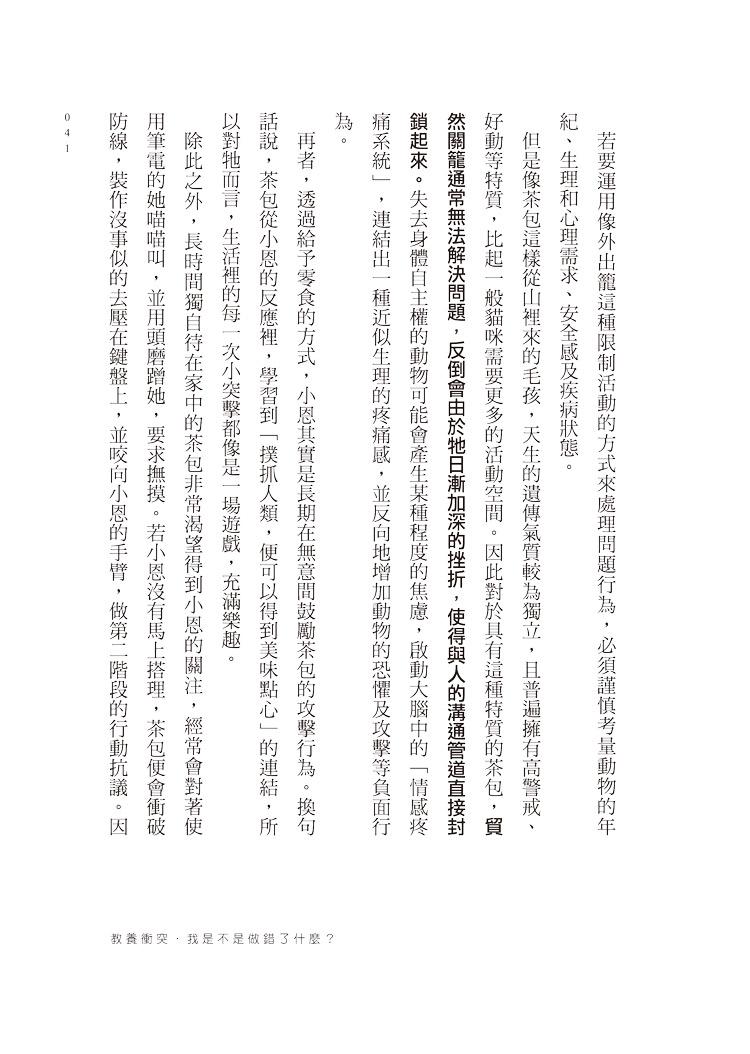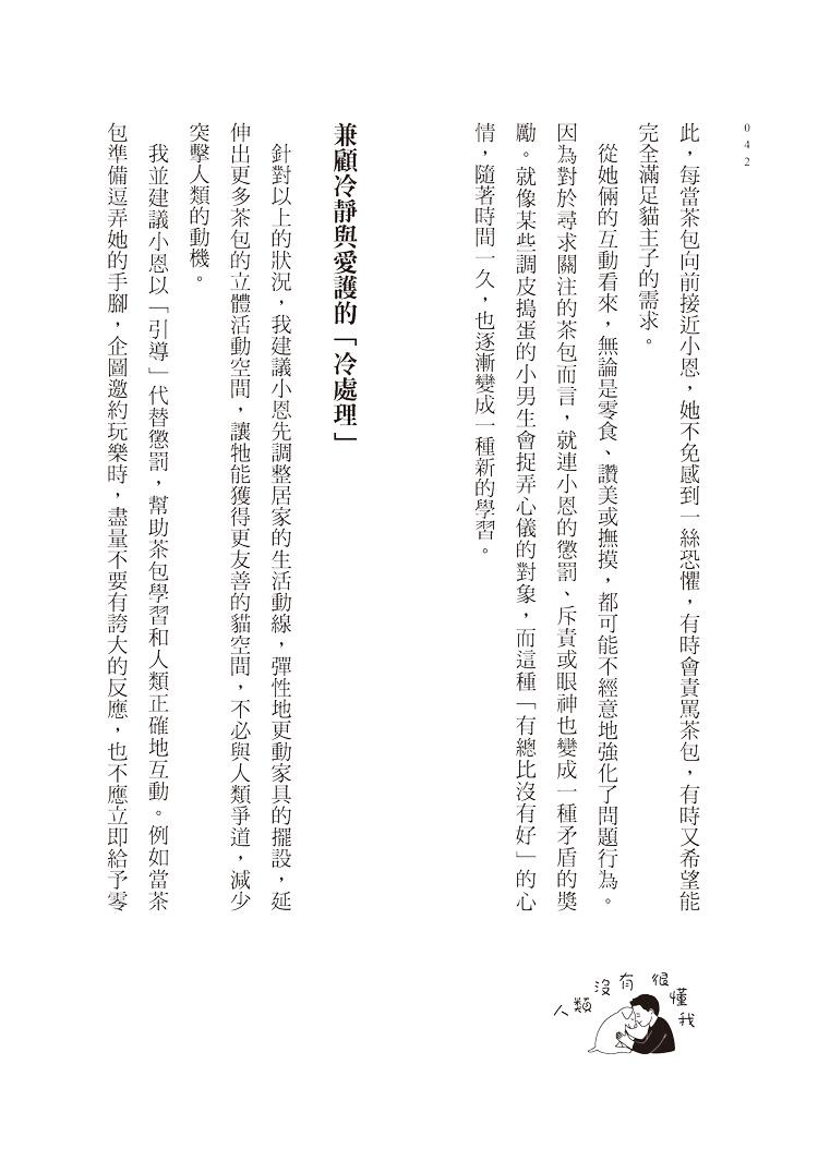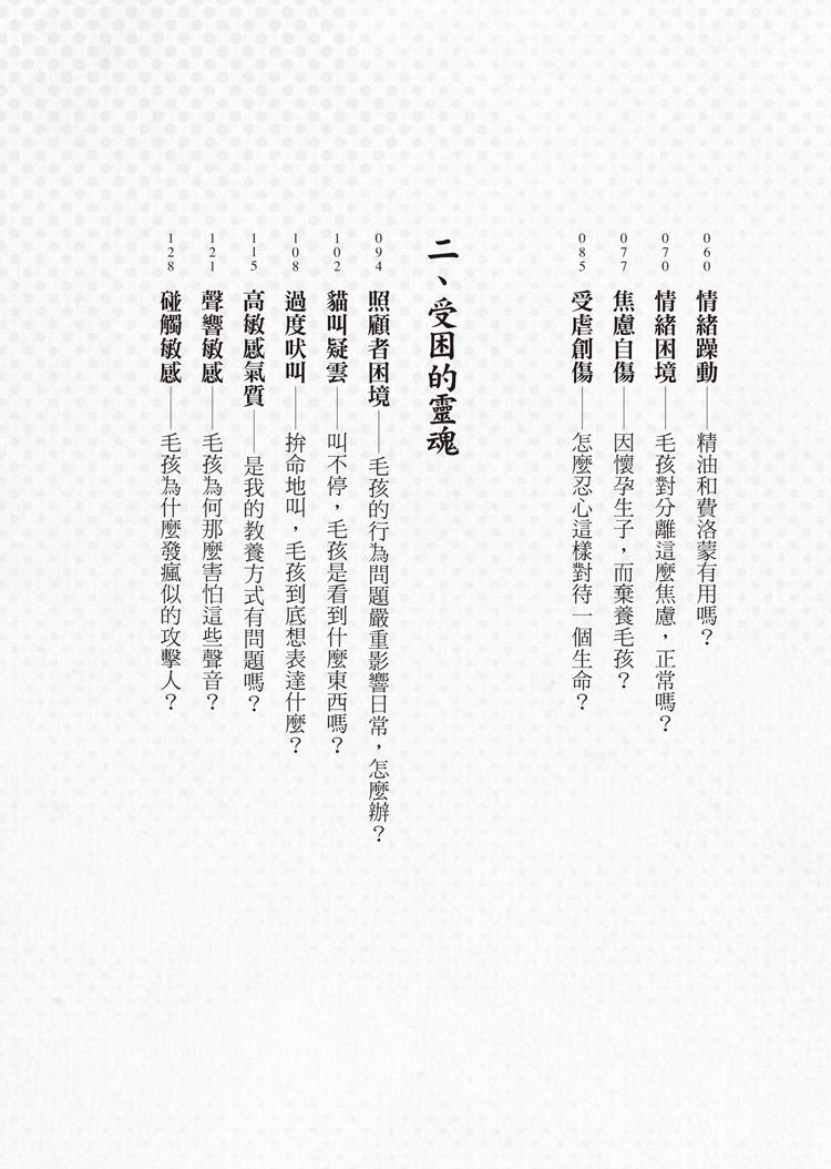 在本書中,我不僅分享許多關於犬、貓的行為知識,也寫下許多親身看診經歷,希望讓讀者能夠體會,在每個困境中的家屬與毛孩,也都同時擁有自己生活的模樣。