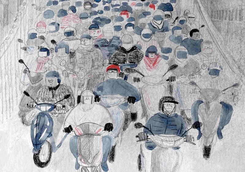 插畫家陳沛珛頗具靈氣的圖畫小說作品《暫時先這樣》,樸拙的線條,水彩派泥灰(Payne’s Gray)層層堆疊的蒼鬱色調,便寫實而細緻地呈現出典型台灣城市圖像:高速公路上望不見盡頭的回堵車流、高架橋邊老舊住宅櫛比鱗次的窗、懸垂在窗外的冷氣機……我尤其喜歡畫作裡那些人物的日常。――OPEN BOOK〈讀漫畫〉專欄╱作者吳妮民(作家)