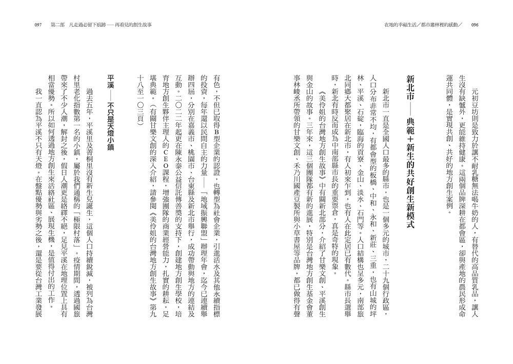 被譽為地方創生教母的陳美伶,認為二○二四年後,台灣的新價值與新時尚,是地方創生,並將下一個五年定錨為:「讓地方創生成為在地幸福生活的代名詞。」她期待以本書燃起大家對地方創生的熱情,一起投入為家鄉做一點事的行列。