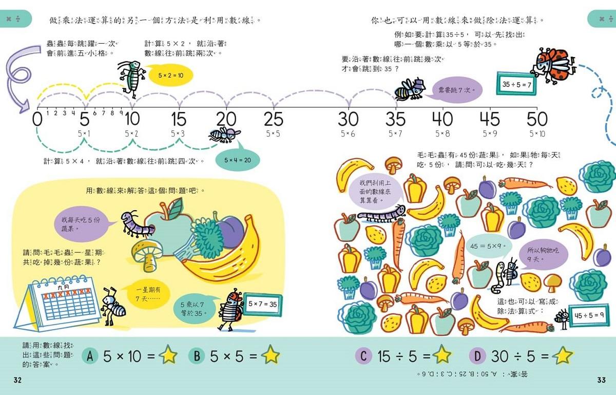 這本書用簡單易懂的方法讓孩子掌握基礎四則運算,建立形狀、測量、方向、統計學等基本概念,還有許多好用的祕訣和工具,例如:10的配對組合、數線、乘法表、百格板、長條圖,透過有趣的問題來玩數學,認識數學。