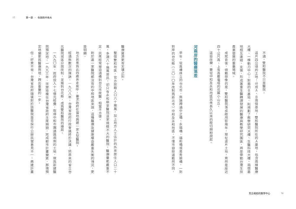 凡此種種,本書聚焦書寫雙和醫院如何異軍突起、後發先至的關鍵成功心法,不僅可供做國內教育醫療體系、生醫產業未來發展參考,也可做為醫界與城市互惠共榮的經驗借鑑。