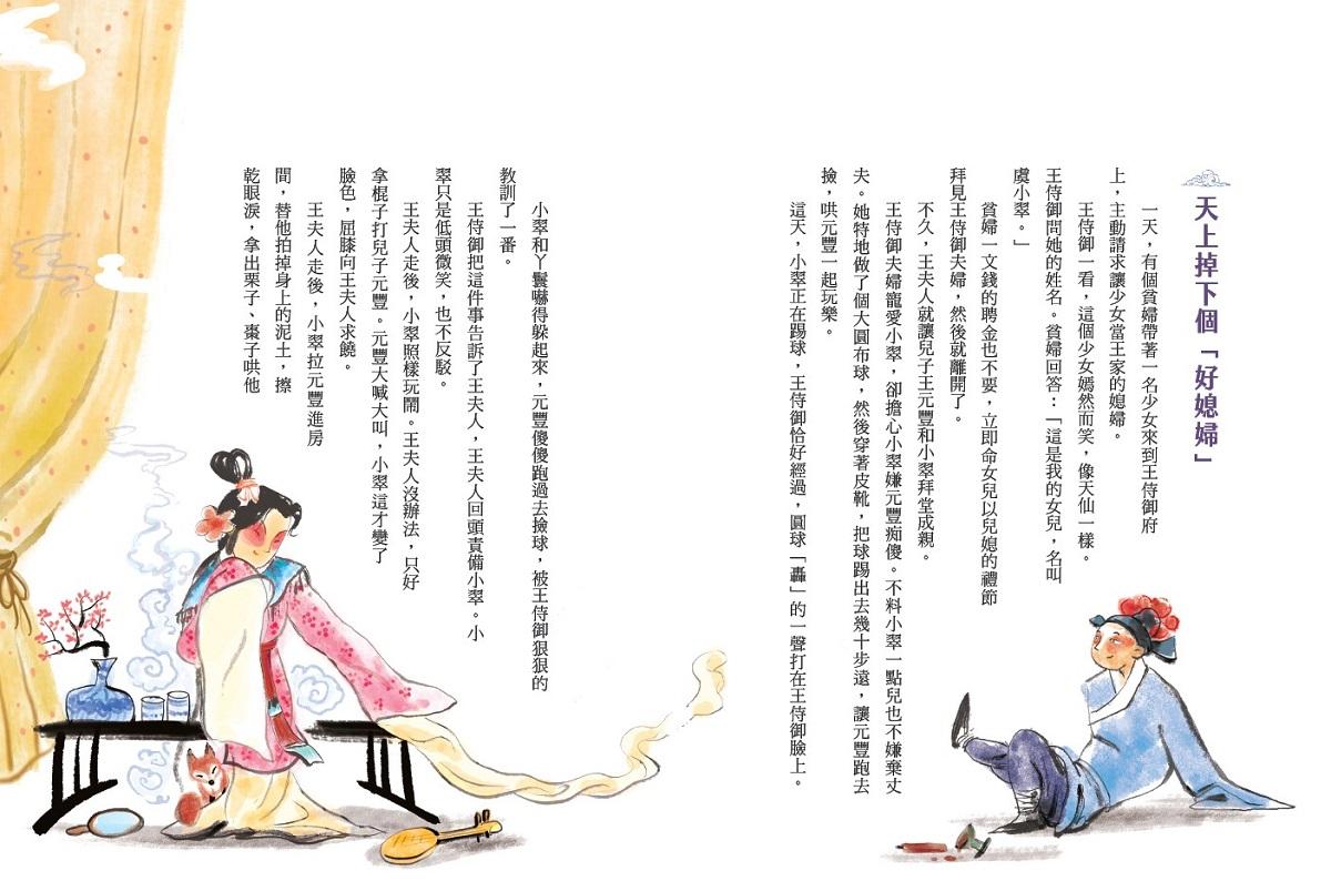 我喜歡作者為各個篇章重新下的篇名,〈親兄弟不如狐朋友〉、〈彩翼翩翩為人來〉、〈洞庭湖面踢「足球」〉、〈畫匹駿馬騎上跑〉、〈三百多年前的「虛擬世界」〉等等,有現代感的趣味、又有古典的優美。每篇故事一開始都用幾句短語勾勒出「劇情大要」,有如預告片的讓人想展書閱讀;故事並非完全依原著逐字逐句翻譯,作者顯然針對兒童少年的特點有所斟酌,改寫後的故事既要淺顯易懂,又要保留原著的文學品味,十分難得。