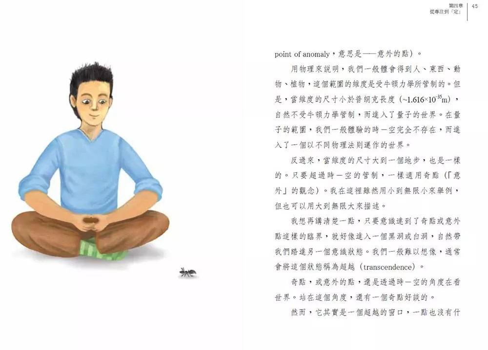 不過,接著從《我是誰》開始,到《集體的失憶》、《落在地球》和這本書《定》,逐漸地,已經自然移動角度,從二元對立轉到一體,從「空」看著「有」,從內心看著外在,從「在」看著「做」,從「心」看著「人」。