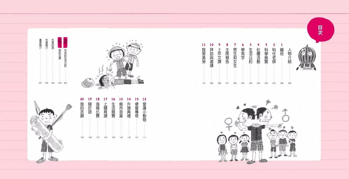 要重新編班、做科學展覽、還要學寫作文和書法;會輪流上臺主持班會、參加社團,到同學家拜訪,當個好客人;還有很多關於「男生女生」的偉大問題要關心!
