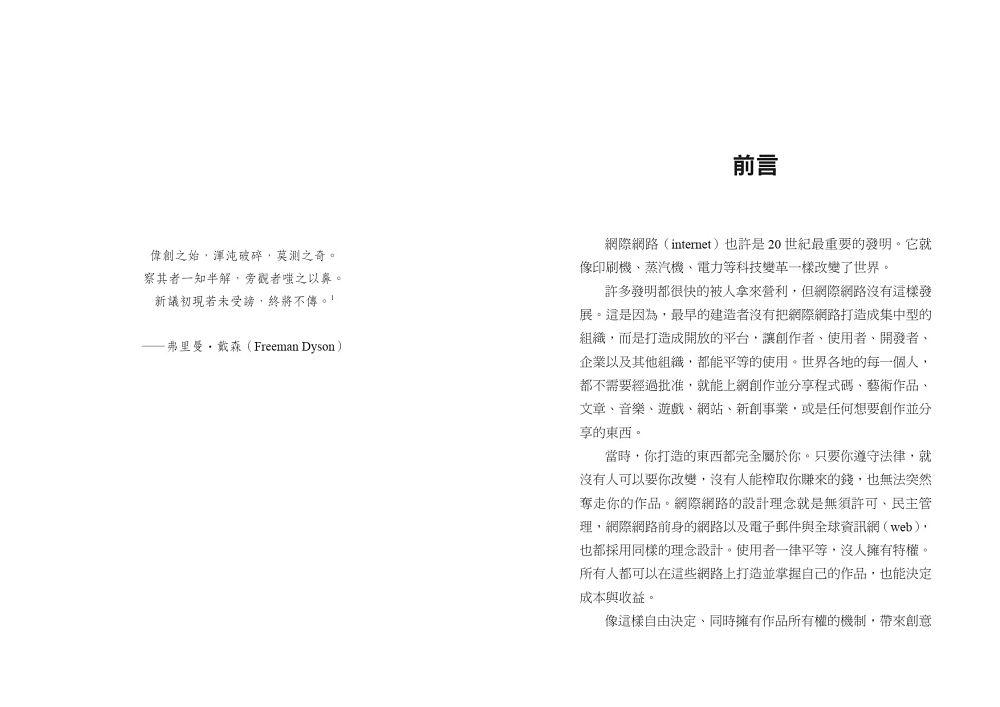 本書能讓你了解網際網路應該走向何方,以及如何實現這項激勵人心的願景。──山姆‧奧特曼(Sam Altman),OpenAI共同創辦人