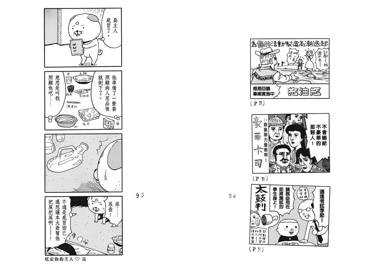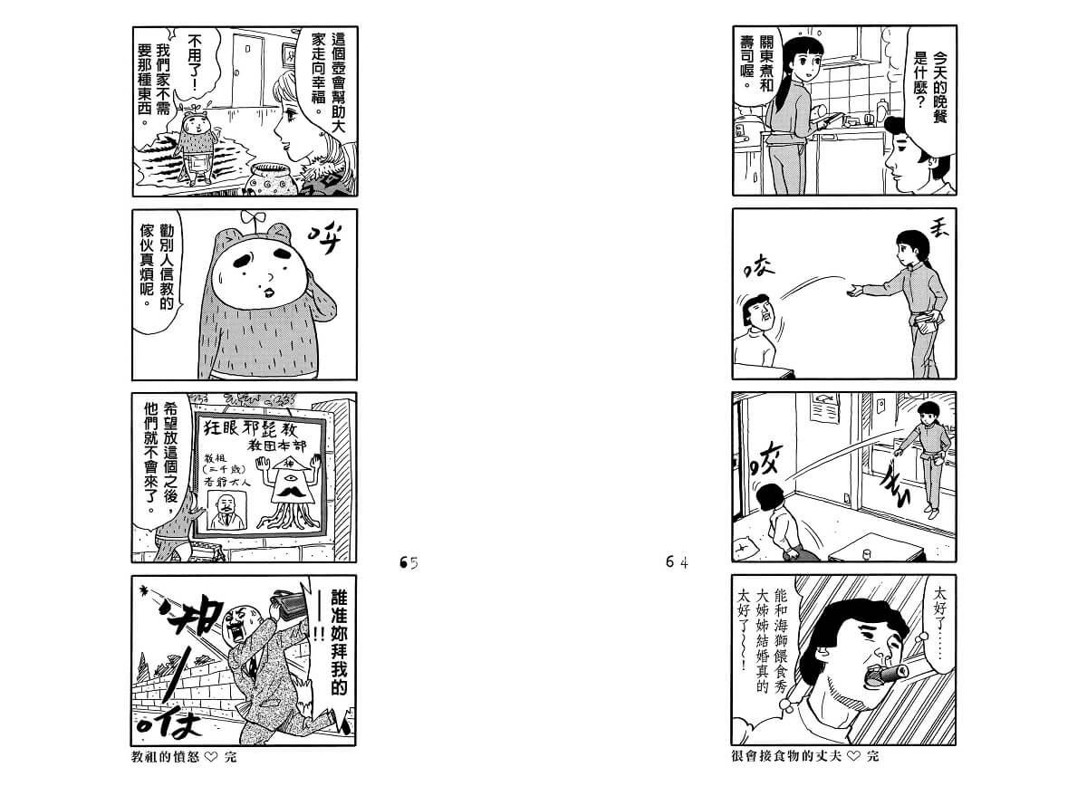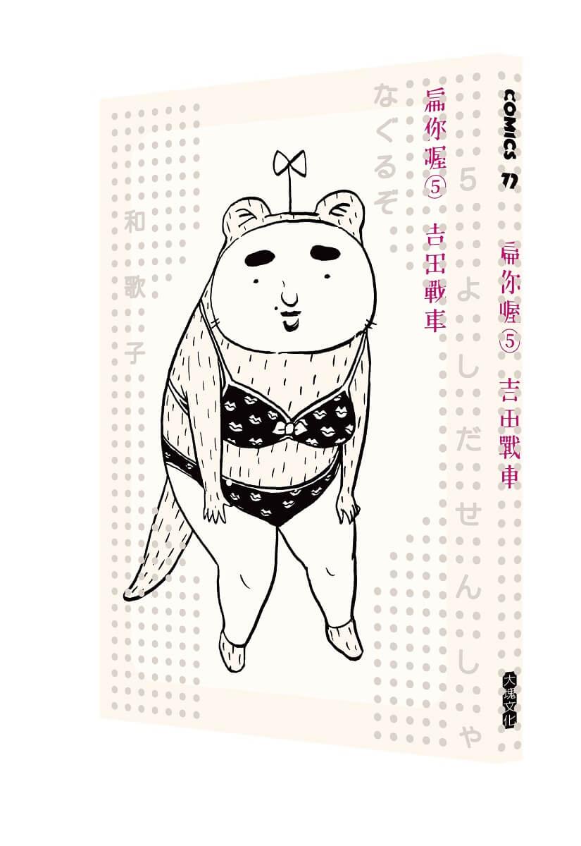 吉田戰車的漫畫可以跟朋友分享,但不能討論,不信你找一篇好笑的給任何人看,就會變得難笑。所以我只能說,裡面那個叫信子的耳包妹非常欠揍,還有身體打開應該是工讀生的寵物狗也好欠揍,還有一位主婦請求自己的丈夫讓兒子領養,只為了想要快點當阿嬤,也是有夠北七⋯⋯還有很多啦,裡面每個人都好想扁,不誇張,每個。