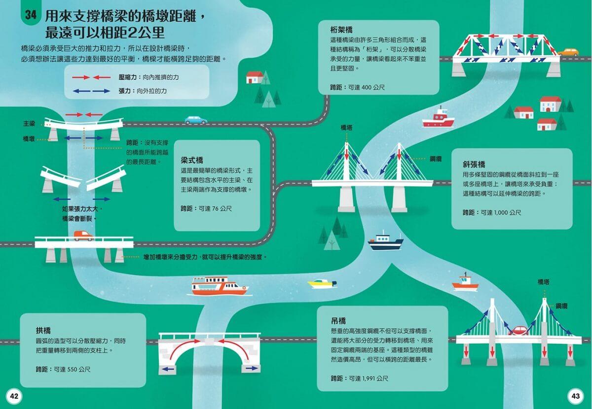 橋梁必須承受巨大的推力和拉力,所以在設計橋梁時,必須想辦法讓這些力達到最好的平衡,橋樑才能橫跨足夠的距離。