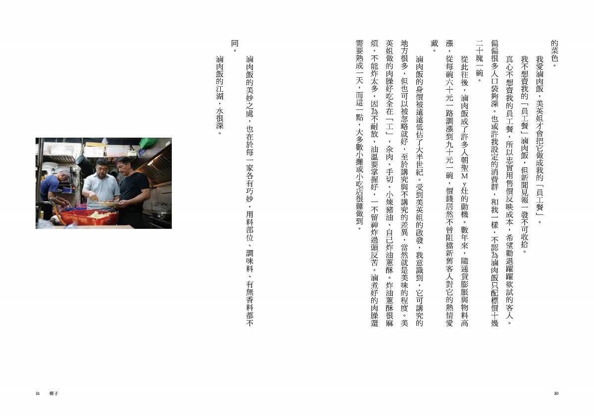 「滷肉飯的身價被遠遠低估了大半世紀。受到美英姐的啟發,我意識到,它可講究的地方很多,但也可以被忽略就好,至於講究與不講究的差異,當然就是美味的程度。」
