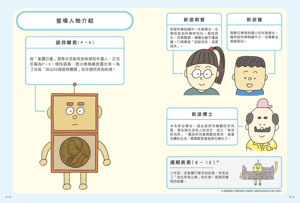 這次,就由諾貝爾君和新波博士一起聯手,帶著博士的愛孫,還有正在閱讀本書的你,一起尋找地球上 99 個超有趣卻又不為一般人所知的諾貝爾奬祕密。