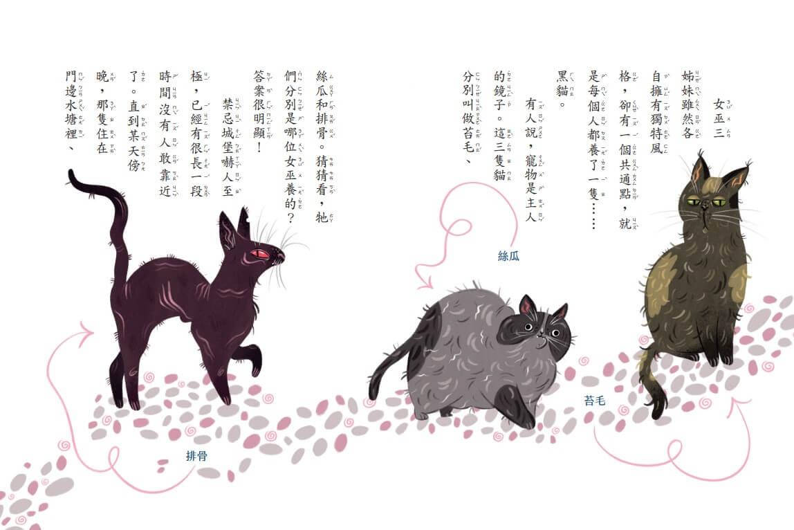 這本書的圖畫我超喜歡,畫風有點可怕但又有點有趣。我最喜歡那三隻貓,女巫都有貓呢!圖畫很多也不會看太累,希望可以趕快出書,我好像看後面的故事啊!——Emma(無界塾四年級學生)