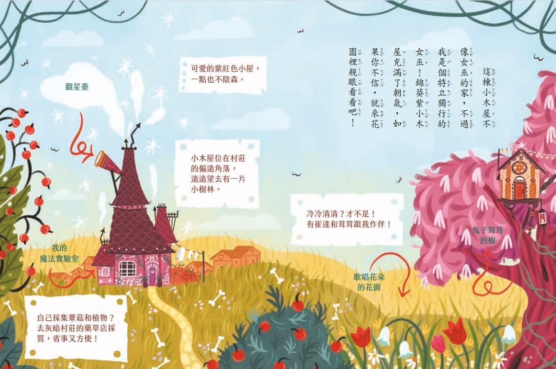 你也覺得女巫都住在森林和沼澤深處的茅屋裡嗎?真正的女巫都住在神祕的地方,偷偷的在樹林裡採集植物和蕈菇,在沒有月光的黑夜裡調製魔法藥水。但壞女巫三姊妹例外,她們住在城堡裡。說真的,我也很想像真正的女巫那樣,住在神祕有趣的地方。