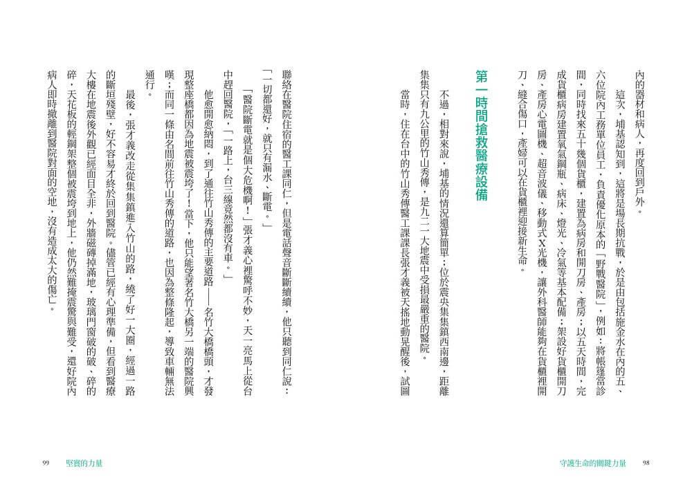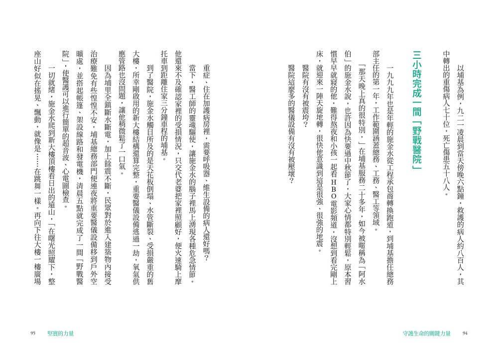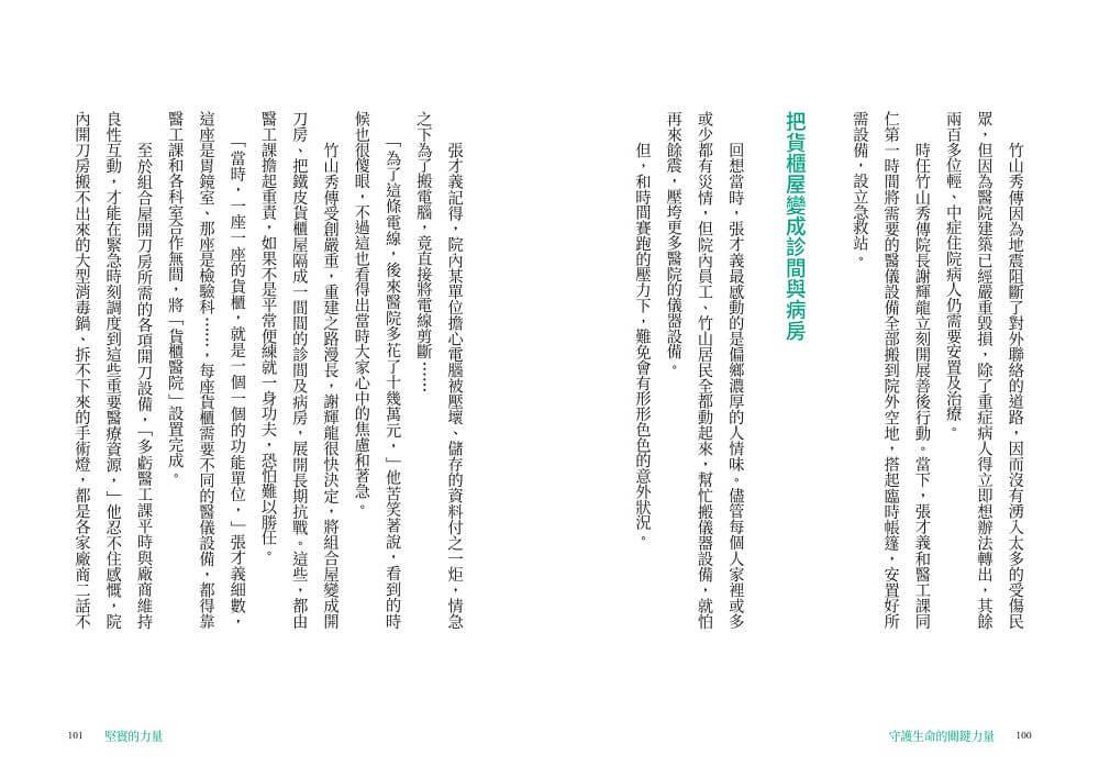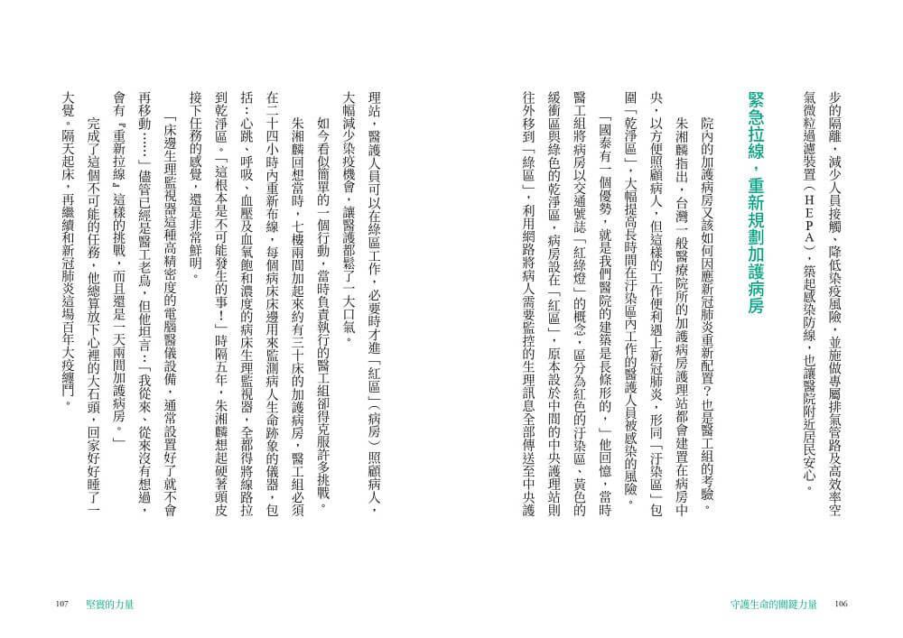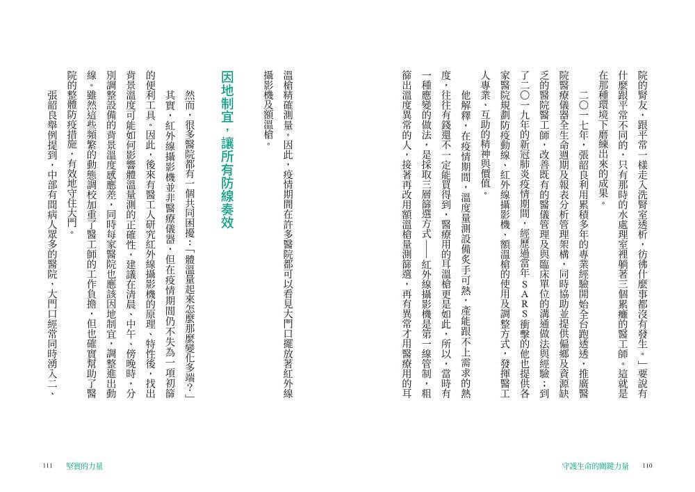 本書記錄下這些充滿熱情與使命感的醫工人,從維修現場到醫療現場,從醫院到跨領域創新的精采故事,希望能讓更多人看見他們沉默身影背後的拚搏、汗水與喜悅。或許他們只是小小的螺絲釘,卻是醫療產業中不可或缺的一環,更是守護你我健康的堅實力量。