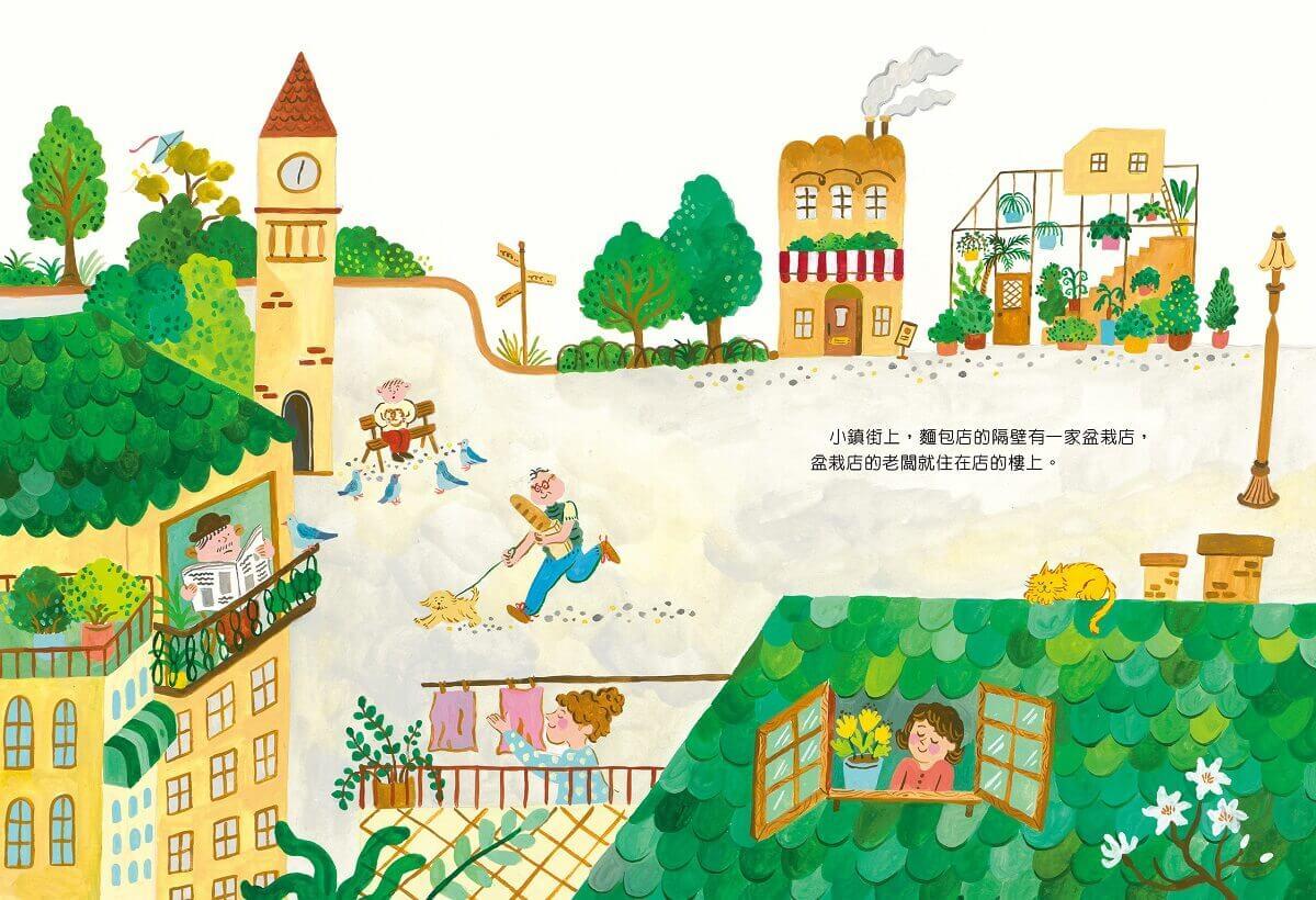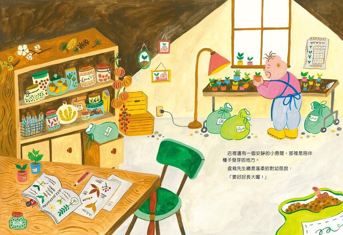 小鎮上的盆栽店老闆「盆栽先生」對照顧植物的事無所不知,酢漿草、迷迭香、蝴蝶蘭、山茶花、檸檬樹,他總是細心呵護每個種子,直到他萌芽、長大。