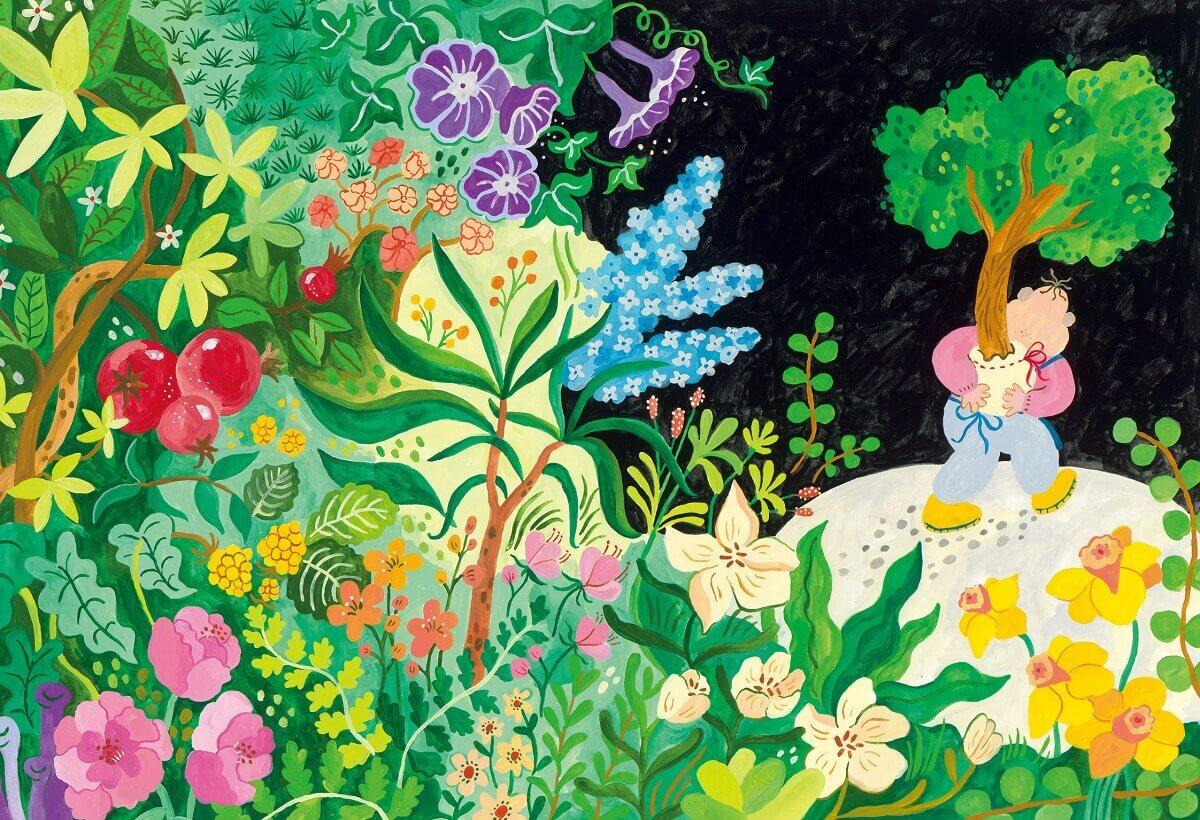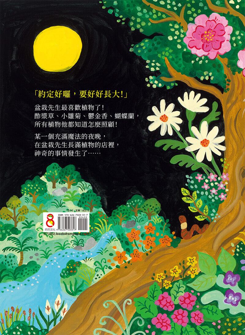 有天,像是月亮施了魔法,植物們一夜之間長得好大好多,茂盛到把盆栽店都擠滿了,這下盆栽先生該如何是好呢?