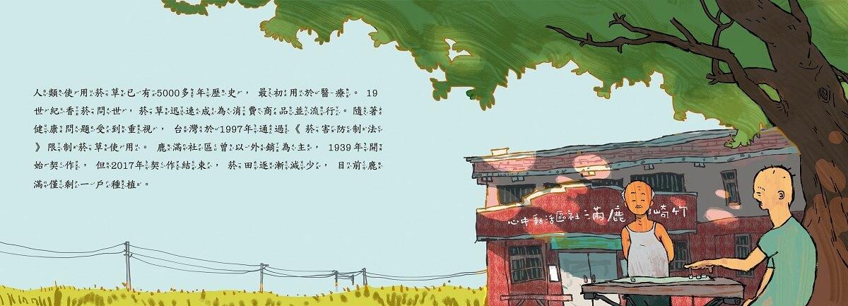 菸草,曾是鹿滿社區的經濟支柱,也是許多家庭賴以為生的產業。本書帶領讀者走進那段過往的時光,跟隨著鹿滿的孩子們一同體驗在菸田中成長的點點滴滴。當你翻開這本書,仿佛能聞到菸葉的味道,感受到田間的微風,以及孩子們努力工作的身影。無論是身為農村子弟的親切感,還是對農村文化的陌生,本書都會為您打開一扇了解那段歷史的窗戶。