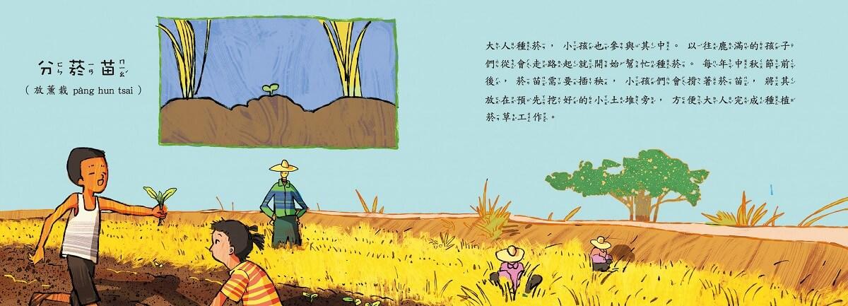 菸草不僅僅是經濟作物,它也代表著一段辛勤、團結的日子。每個家庭的每位成員,不論年紀,都曾在這片菸田中付出汗水和努力。孩子們的天真與堅韌,大人的智慧與辛勞,交織出了一幅幅鮮活的農村生活畫面。這本繪本不僅記錄了菸草的種植過程,更記錄了世代傳承下來的文化與人情味。