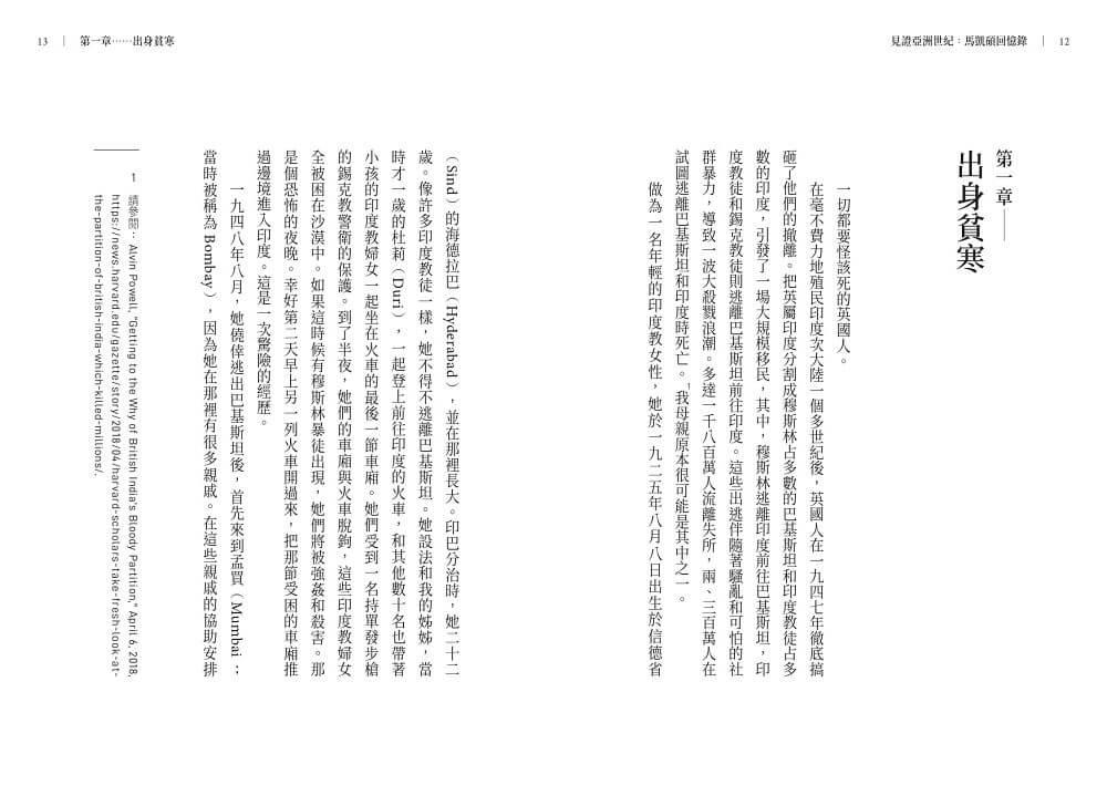 在毫不費力地殖民印度次大陸一個多世紀後,英國人在一九四七年徹底搞砸了他們的撤離。把英屬印度分割成穆斯林占多數的巴基斯坦和印度教徒占多數的印度,引發了一場大規模移民,其中,穆斯林逃離印度前往巴基斯坦,印度教徒和錫克教徒則逃離巴基斯坦前往印度。這些出逃伴隨著騷亂和可怕的社群暴力,導致一波大殺戮浪潮。多達一千八百萬人流離失所,兩、三百萬人在試圖逃離巴基斯坦和印度時死亡。我母親原本很可能是其中之一。