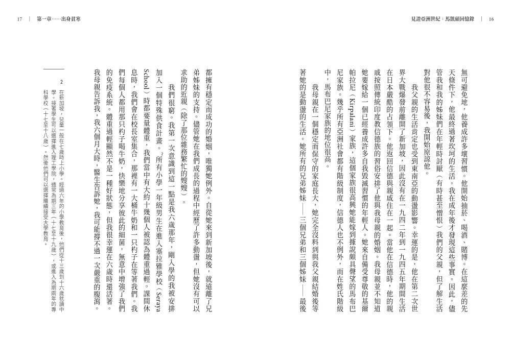 馬凱碩的回憶錄訴說了他從貧困中崛起,進而在外交與學術界達成傑出成就的非凡故事。這本深刻的個人記述也如實描繪了新加坡和東南亞令人難以置信的轉變。這是一則激勵人心的故事,優美的文筆令我愛不釋手。一本必讀佳作。――盧英德(Indra Nooyi),前百事公司(PepsiCo)董事長兼執行長