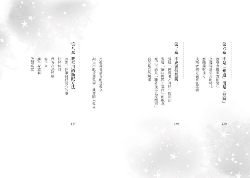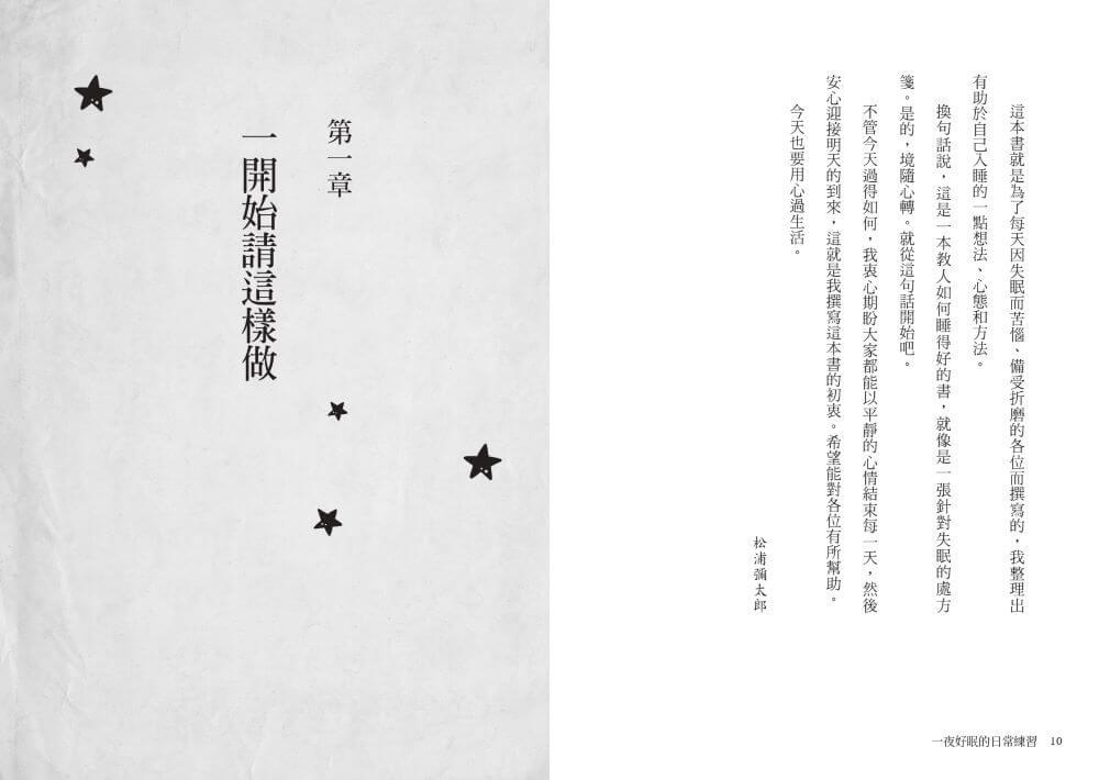 換句話說,這是一本教人如何睡得好的書,就像是一張針對失眠的處方箋。是的,境隨心轉。就從這句話開始吧。