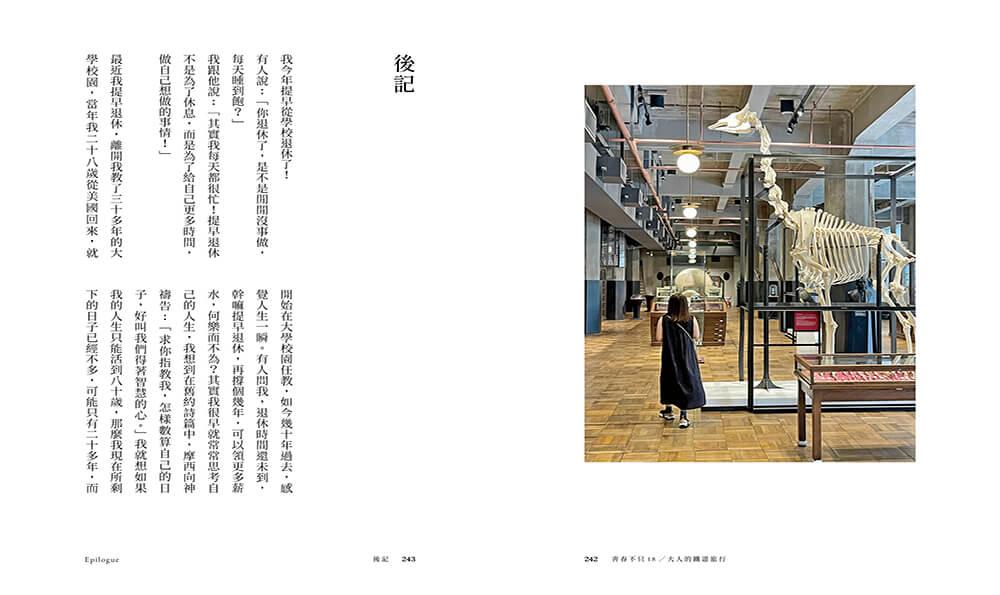 這本書的順利出版要特別感謝副總編輯秀娟的積極與認真,督促我不斷地努力書寫;也感謝哈利的參與討論,書名「青春不只18」正是他靈光一現所提出的。另外還要特別感謝我聰明伶俐的學妹 Rebecca Light,她總是可以在博物館忙碌工作期間,撥空幫我想出了適切又美好的英文書名。