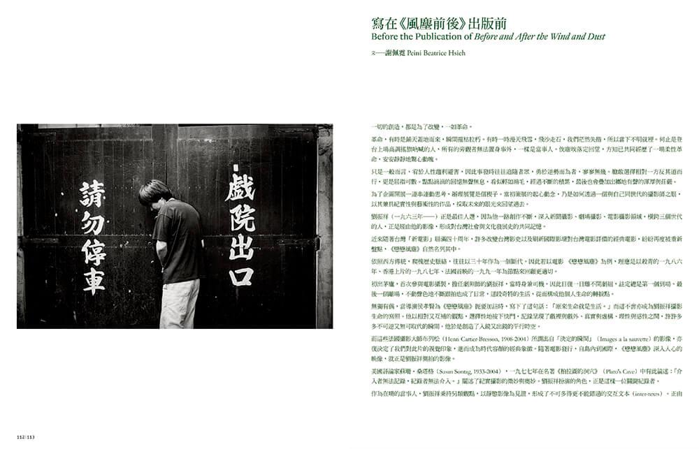 無獨有偶,當導演侯孝賢為《戀戀風塵》扼要加註時,寫下了這句話:「原來生命就是生活」,而這不啻亦成為劉振祥攝影生命的寫照。他以相對又互補的觀點,選擇性地按下快門,記錄呈現了戲裡與戲外、真實與虛構、理性與感性之間,許許多多不可逆又無可取代的瞬間。他於是創造了入鏡又出鏡的平行時空。