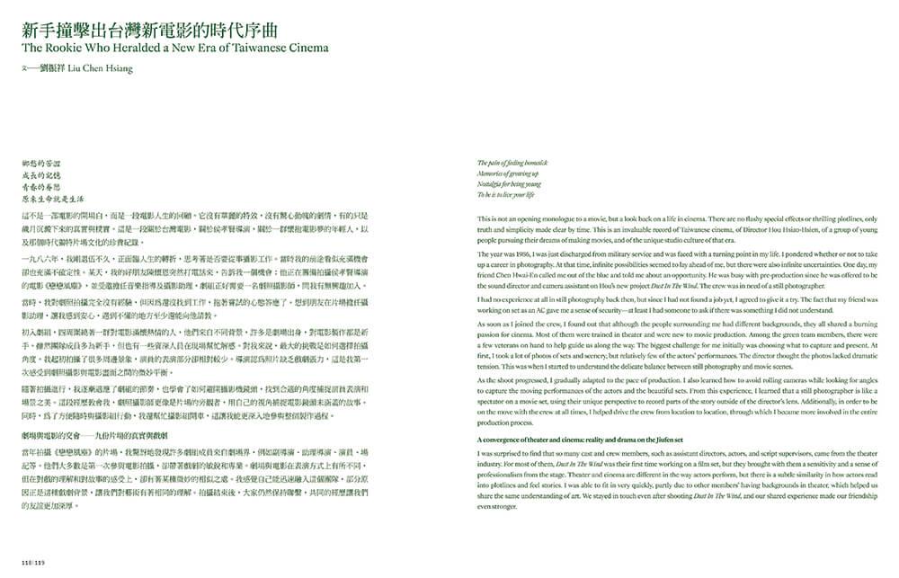 圖文並茂,文章中英對照:完整的電影劇照和工作記錄之外,收錄的文章更提供英文對照,打破閱讀和語言國界。