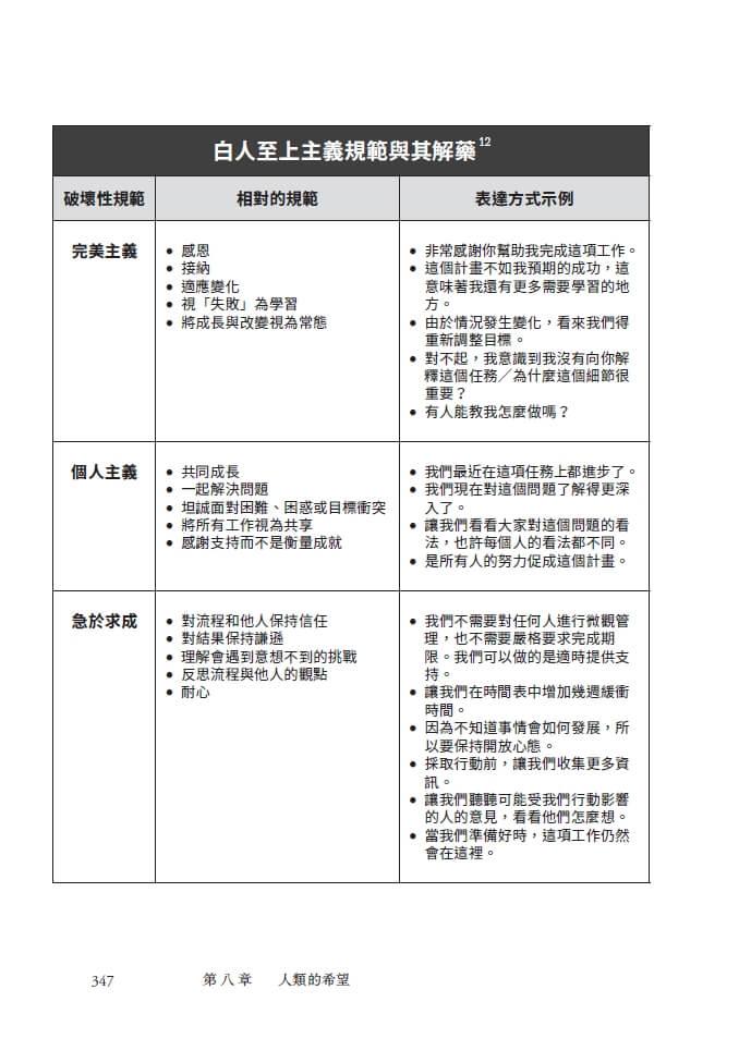 「系統性羞愧」主張,每個人唯有透過持續努力付出,並始終做出「正確的」決定,才能帶來有意義的改變。它告訴我們,身心障礙者不能把自身不利條件當成落居人後的「藉口」,貧窮者應該發憤圖強,靠自己逆轉命運。它告訴女性,只要學會勇於表達自我並勇往直前,就能克服工作場所的性別歧視;它還告訴黑人,只要注意修飾自己的語氣,就能避免職涯中的種族歧視。當一名黑人女性覺得很難同時遵循以上兩個相互矛盾的建議時,「系統性羞愧」就會把問題歸咎於她不夠堅強,或者轉而指責她太過偏激。