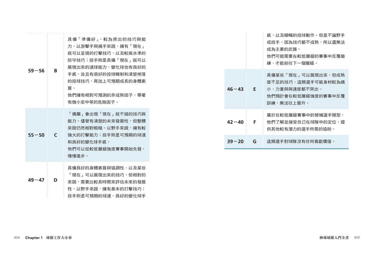 球探是職業棒球產業中,除了球員、教練之外最耳熟能詳的職位,但卻很少人能夠確切描述其工作內容和技能。讀完這本書會發現,場邊觀察選手看似簡單,要做得好需要和棒球數據分析師一樣大量的經驗累積及評估能力。對球探工作非常感興趣,甚至未來想要投身球探工作的讀者,《棒球球探入門全書》絕對是你不能錯過的一本好書!──鄭凱駿,中華職棒進階數據網站「野球革命Rebas」營運長
