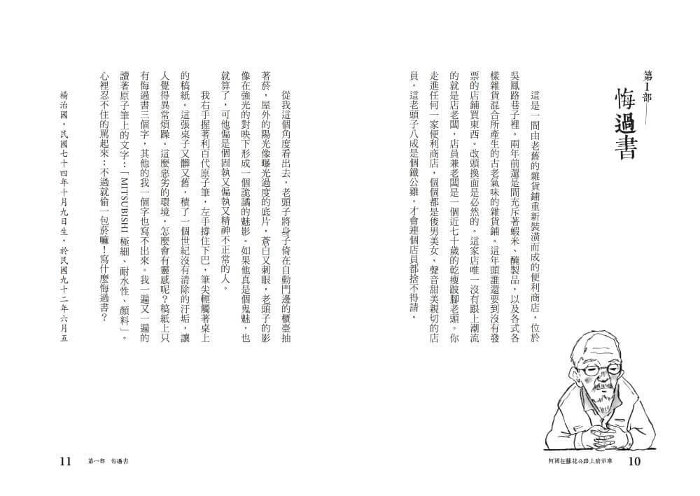 我右手握著利百代原子筆,左手撐住下巴,筆尖輕觸著桌上的稿紙。這張桌子又髒又舊,積了一個世紀沒有清除的汙垢,讓人覺得異常煩躁。這麼惡劣的環境,怎麼會有靈感呢?稿紙上只有悔過書三個字,其他的我一個字也寫不出來。我一遍又一遍的讀著原子筆上的文字:「MITSUBISHI 極細、耐水性、顏料」。心裡忍不住的罵起來:不過就偷一包菸嘛!寫什麼悔過書?