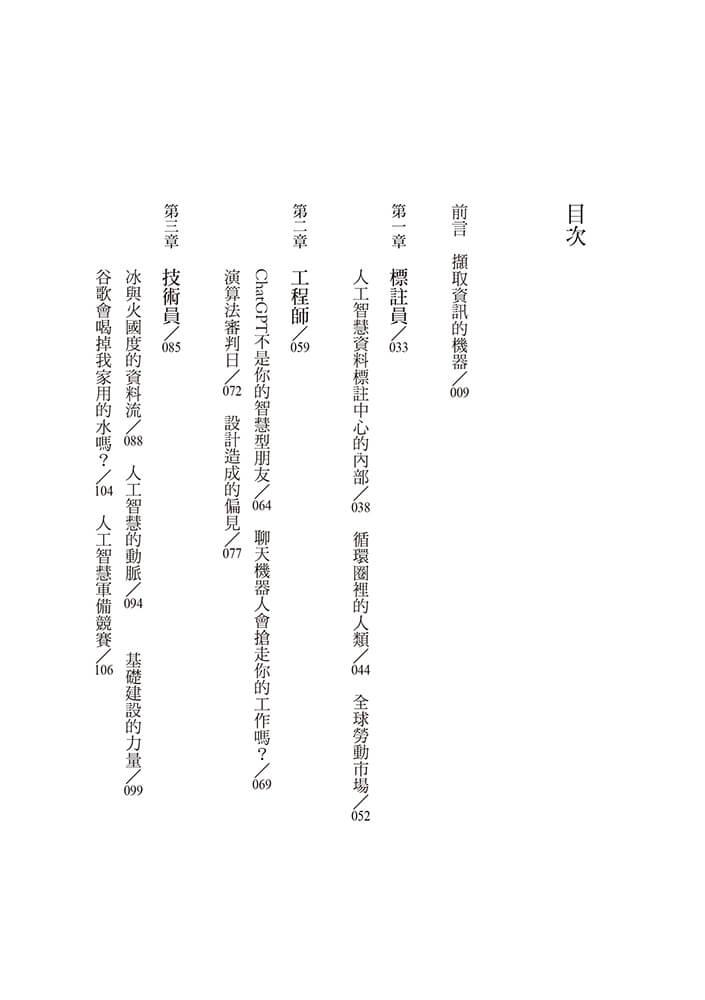 矽谷給我們灌輸了這樣的錯覺,即人工智慧是一種無摩擦科技,將為人類帶來財富與繁榮。但在這個光鮮亮麗的外表下,隱藏著一個殘酷的現實,全球數百萬勞動人口往往在惡劣條件下辛勤工作,人工智慧才得以實現。這個剝削性系統是由一個錯綜複雜的網絡維繫著,這本書對這個網絡進行了急需且精彩的調查,揭示了人工智慧不為人知的真相。