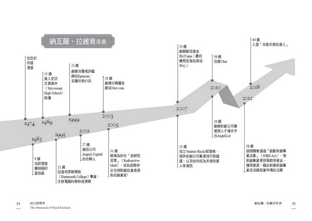 在美國,當一本書被標上 Almanack (年鑑)時,通常都是集結該人物的人生智慧。例如描寫富蘭克林的 《窮理查年鑑》(Poor Richard's Almanack)、巴菲特合夥人蒙格的《窮查理的普通常識》(Poor Charlie's Almanack ),以及這本書(The Almanack of Naval Ravikant)。