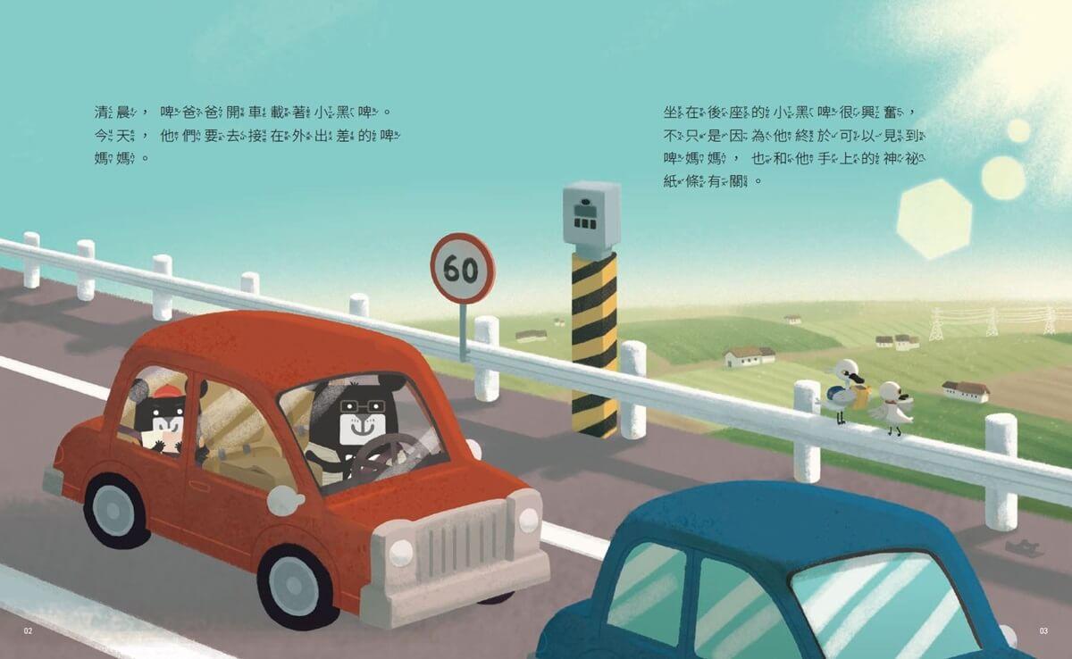 坐在後座的小黑啤很興奮,不只是因為他終於可以見到啤媽媽,也和他手上的神祕紙條有關。