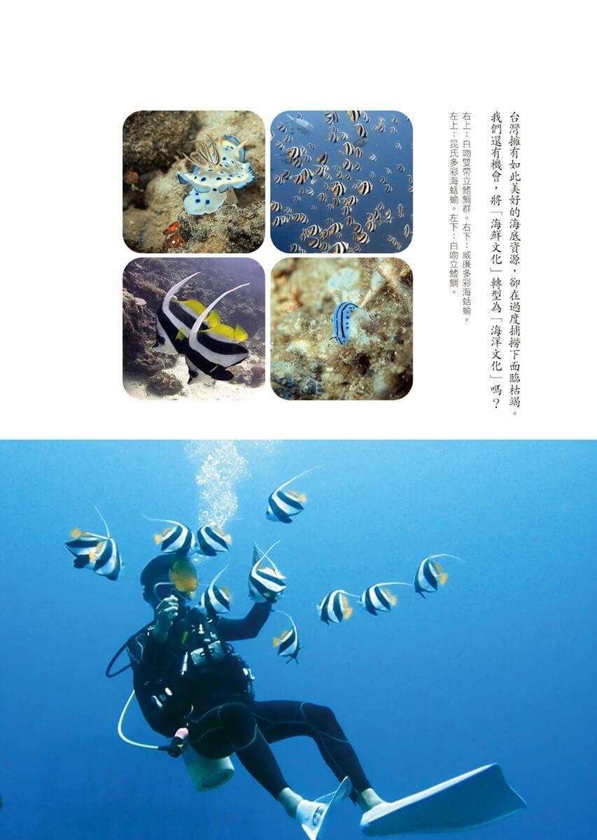 ◎陳徵蔚教練在潛水教學的專業上已無須贅述,讓我更尊敬的是,在教學過程中,除了同步讓學員真實感受到豐美的海洋生態外,他更急切想要傳達給初學者的是──我們置身其中的大海,供養了千萬生靈豐沛的資源,但現在它生病了。如果我們這些受它哺育,卻不曾善待回饋的人類,再不做些補救,必定將自食惡果。