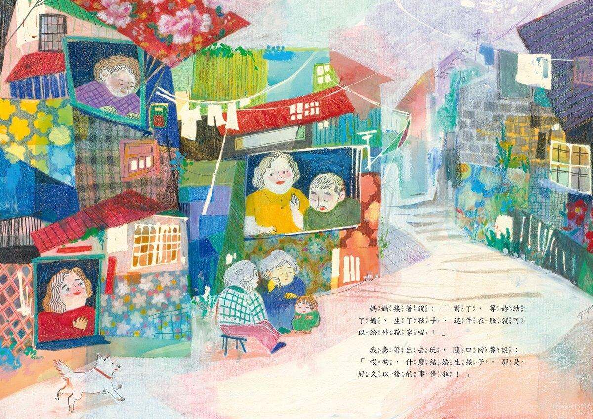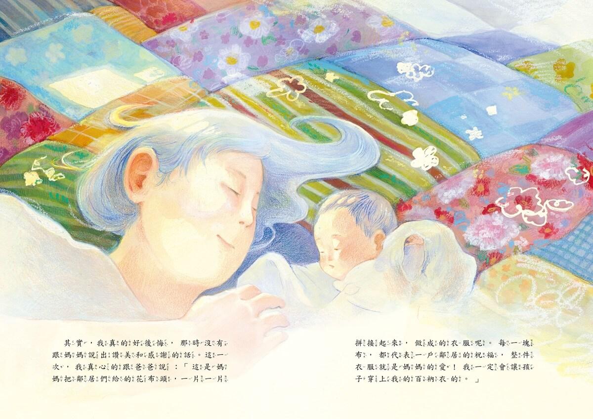 女孩有一件獨特的「百衲衣」,那是媽媽集結街坊鄰居贈送的花布,所縫製的珍貴心意。