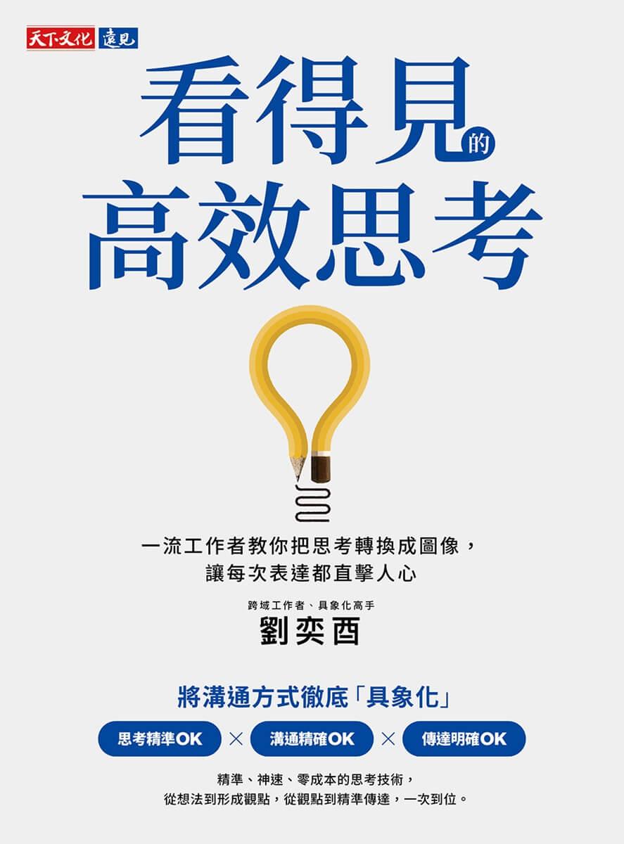 今年(2025年),劉奕酉又回來了,這次他撰寫出《看得出的高效思考》。他認為在人工智慧的浪潮與挑戰中,要讓內容產出上擁有更多的可能性,人們必須具有「將想法轉化為觀點,並將觀點可視化」的圖像思維能力。學到「圖像思維能力」,就能在這個注意力稀缺的時代下,抓住他人眼球,達到「精準表達」。