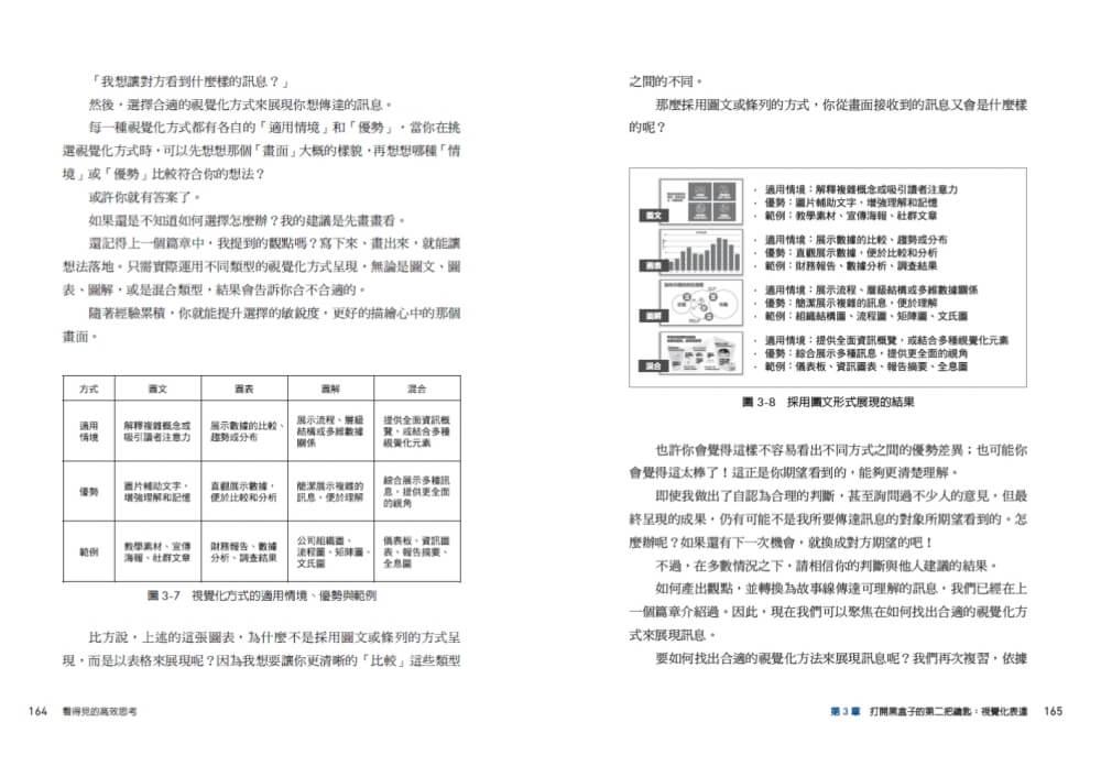 這本書的讀者設定,不僅僅是設計師或專業圖表製作人員。我相信,每一個希望提升自己溝通能力、解決問題能力的人,都需要看得見的思考;而掌握結構化思考與視覺化表達的能力,更是全面提升思考、表達與問題解決的關鍵。