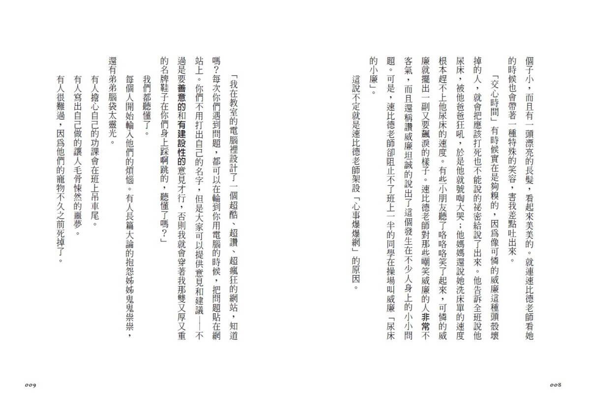 這些短篇故事環環相扣,既溫暖人心,又貼近現實,深刻的洞察力寫出了青少年恐懼的可怕世界,是威爾森的另一部佳作。――英國《好書指南》