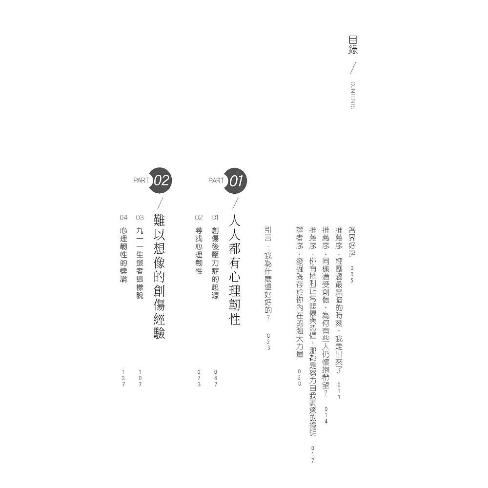 翻譯此書時,深深佩服作者的敏銳和細膩,他透過人類社會結構的變遷與重大歷史事件,娓娓道出創傷定義的起源與濫用;因著人似乎未如諸多助人工作者想像的脆弱, 進而以科學研究證實心理韌性的存在;再藉由豐富的實際案例、觀察與歸納,統整出能帶領我們走過困境的,並非只能埋首發展各種與心理韌性有關的特質,反而是對自身本已具備的彈性有更多覺察,並加以系統性地運用。