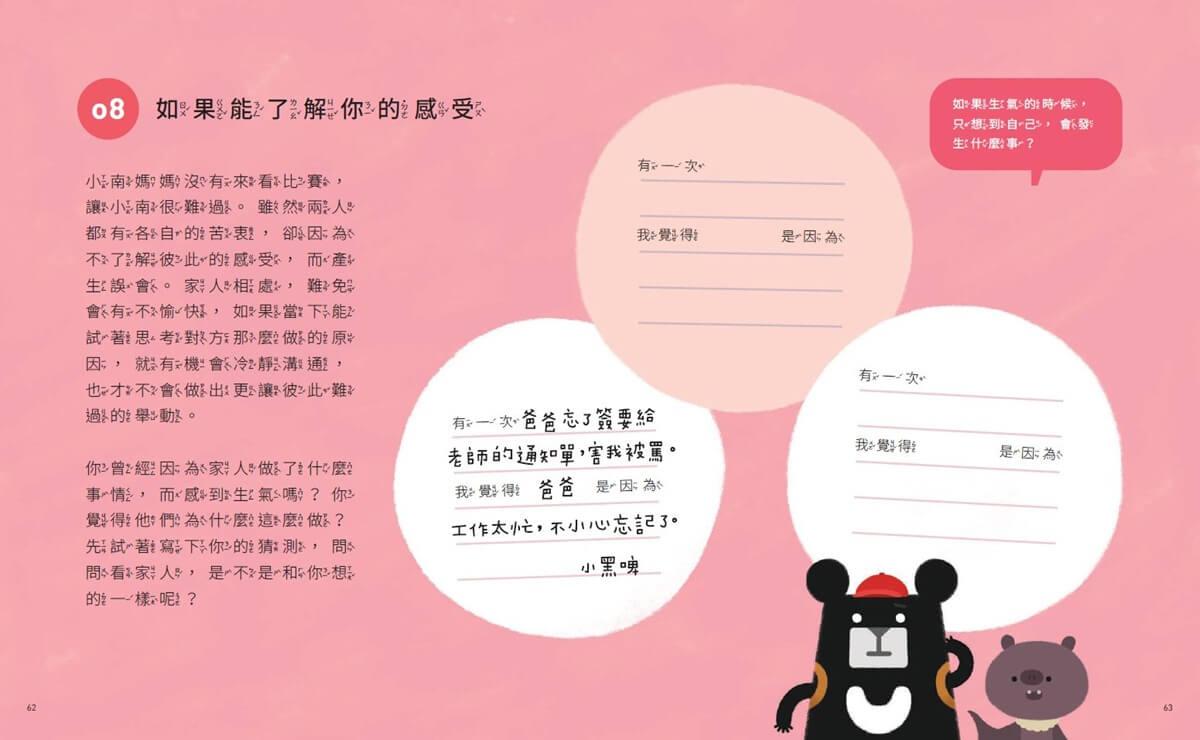 所以其實每一本書的最後,你會發現小黑啤都克服、解決了這個問題,跟他的好朋友一起,所以我們當然也是期待小朋友跟著小黑啤一起了解這些素養、了解這些問題的時候,你也可以解決你自己生活當中的問題。